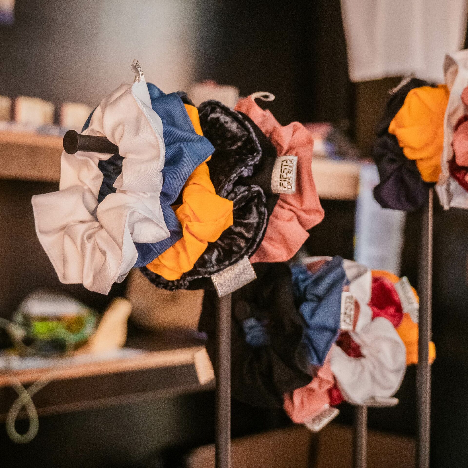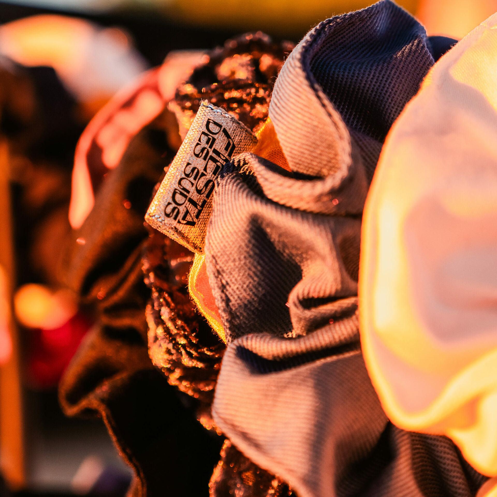 Réalisé à partir de tissus upcyclés et ces chouchous on été fabriqué par les élèves de l’école de production Fask Academy à Marseille.